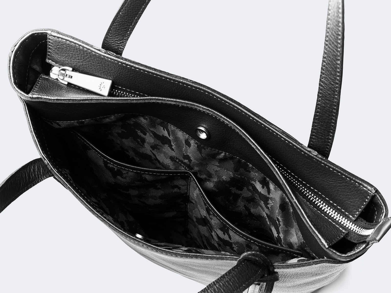 アニアリオリジナルの「シュリンクレザー」は厳選された国内の原皮を使用し、クローム鞣しを行う事で自然でソフトな風合いを引き出しています。染色の際には、3種類のタンニンを調合し入れる事で、革にコシを持たせ、理想の風合いの下地を作り上げ、染料を革芯部まで色をじっくり浸透させる為に、色ごとに回数や染色時間を調整。その後、自然乾燥させた革に、長時間のミーリング作業(革を柔軟化させる工程)を行う事で、膨らみと手に吸いつくようなタッチ感が生まれます。最終仕上げでは、発色の良さと、撥水性を持たせる為にマイクロ顔料で表面を整え、シボのばらつきを抑える為に型押しを施し、更に再度顔料で色の調整と表面のアンティーク感を出す事で、高級感のある「シュリンクレザー」に仕上げています。