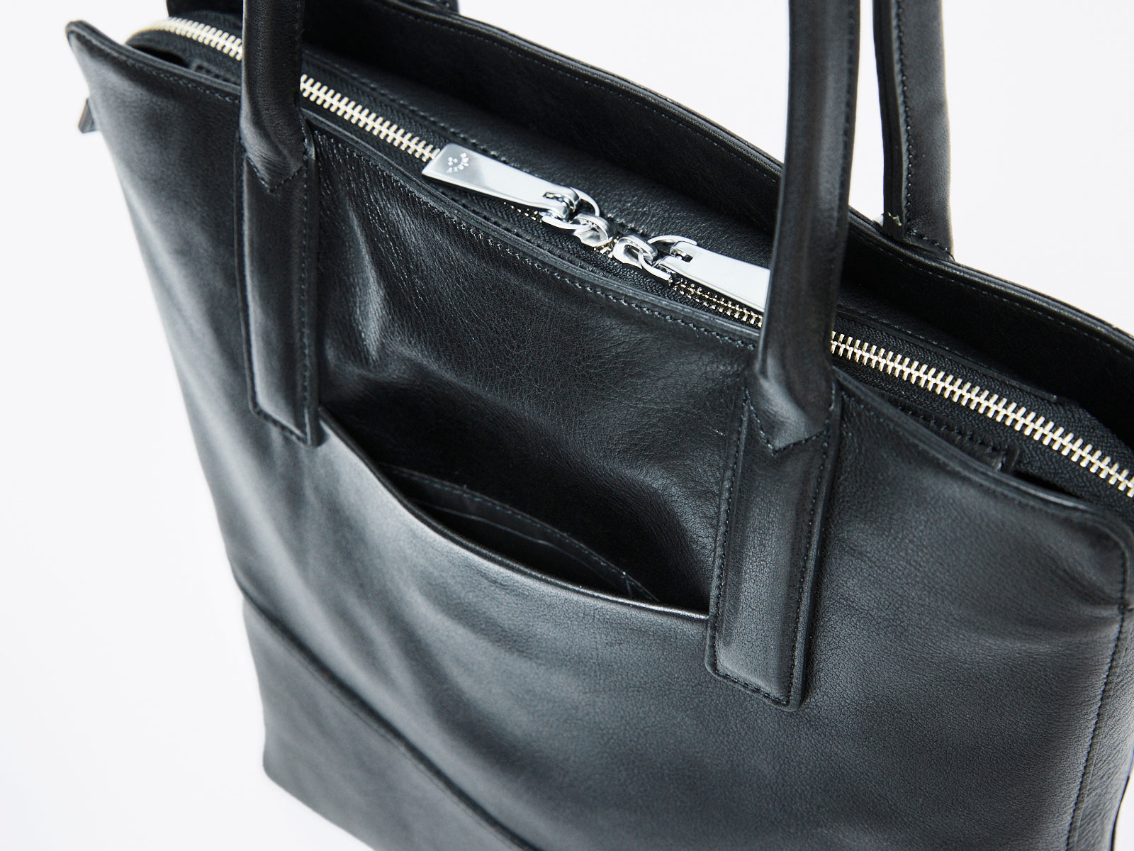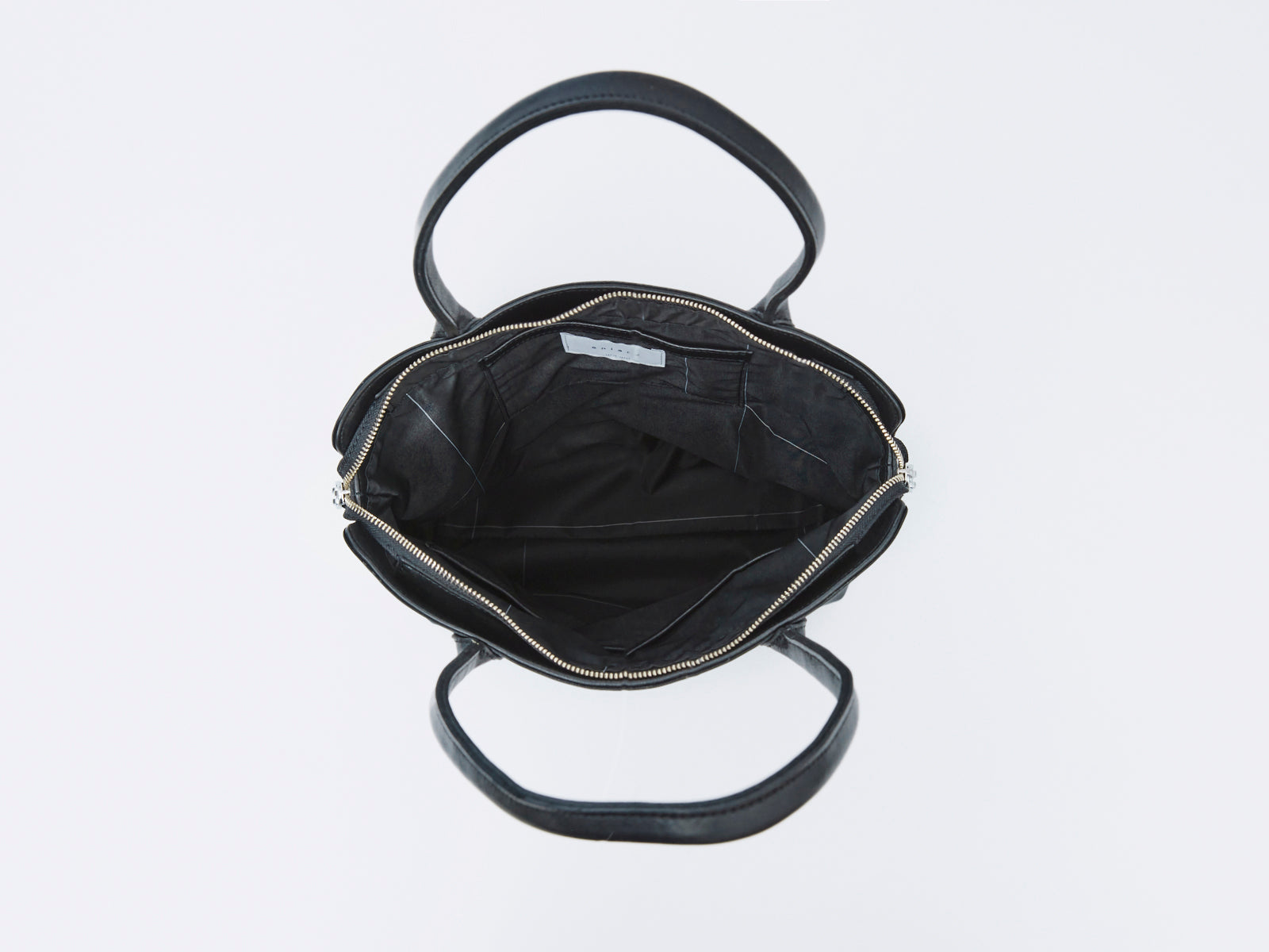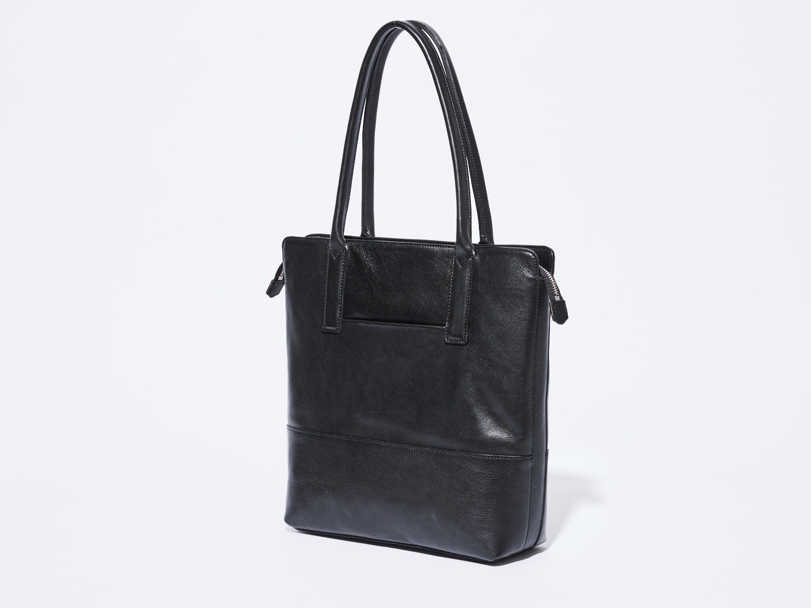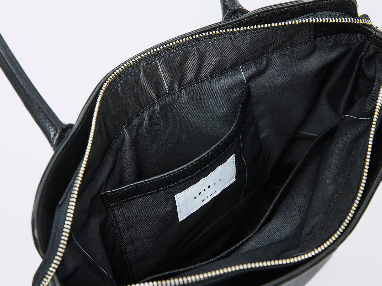 “レザー”バッグブランドとしての「アニアリ」のレザー作りノウハウを注ぎ込み、手間隙を十二分にかけて、理想を追求した革が完成。その手間隙はまず、なめしの工程にあります。ヴィンテージの風格が出るヴェジタブルタンニンなめしと柔らかくしなやかさが増すクロームなめしの両方を絶妙な配合で行うことで、ソフトかつ弾力性のある革下地にしています。その後、職人の手で1枚1枚革を磨きながらフェルト加工を施し、革に眠っているオイル成分を表面に引き出し、高級感のある艶と手に吸い付くようなタッチの質感に仕上げています。また染色にもこだわり、革本来のナチュラルの風合いを消さない染料仕上げを採用。色の調子を見ながら、3度に渡る染色を行うことで、艶に加えて風合いに深みを持たせています。このように時間をかけて作ったゆえ、「アルティザンレザー」には、高級な艶感、風合い、風格、ソフトさ、弾力性と5拍子揃っています。