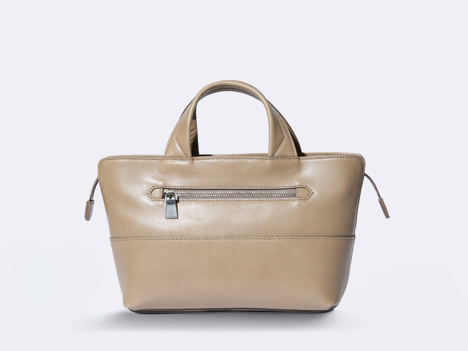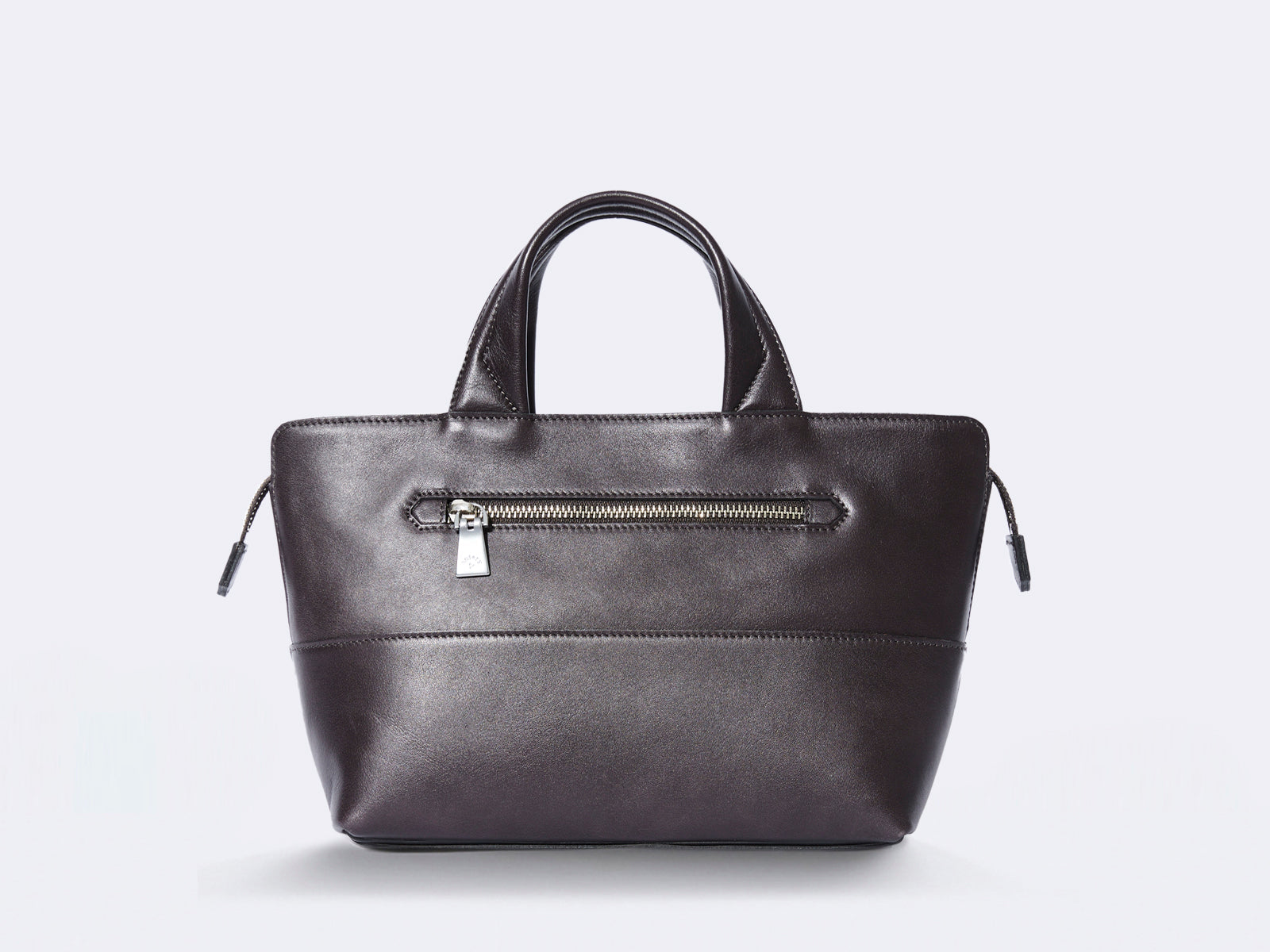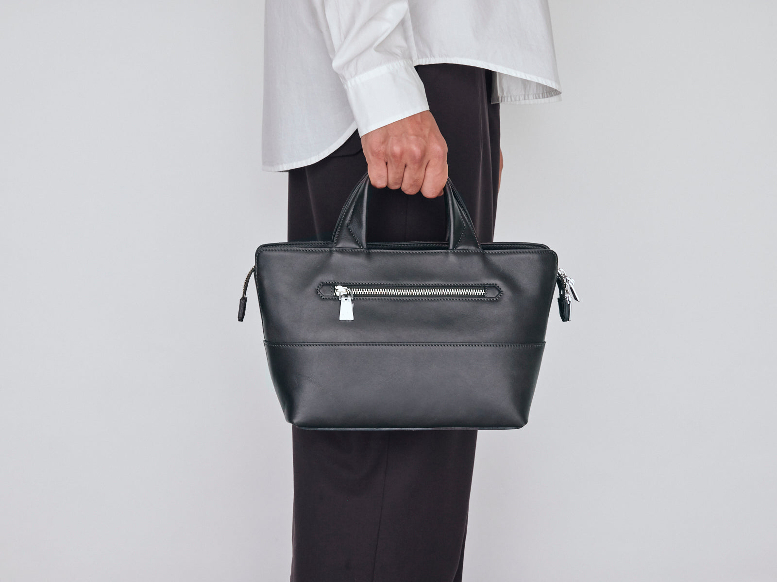 “レザー”バッグブランドとしての「アニアリ」のレザー作りノウハウを注ぎ込み、手間隙を十二分にかけて、理想を追求した革が完成。その手間隙はまず、なめしの工程にあります。ヴィンテージの風格が出るヴェジタブルタンニンなめしと柔らかくしなやかさが増すクロームなめしの両方を絶妙な配合で行うことで、ソフトかつ弾力性のある革下地にしています。その後、職人の手で1枚1枚革を磨きながらフェルト加工を施し、革に眠っているオイル成分を表面に引き出し、高級感のある艶と手に吸い付くようなタッチの質感に仕上げています。また染色にもこだわり、革本来のナチュラルの風合いを消さない染料仕上げを採用。色の調子を見ながら、3度に渡る染色を行うことで、艶に加えて風合いに深みを持たせています。このように時間をかけて作ったゆえ、「アルティザンレザー」には、高級な艶感、風合い、風格、ソフトさ、弾力性と5拍子揃っています。