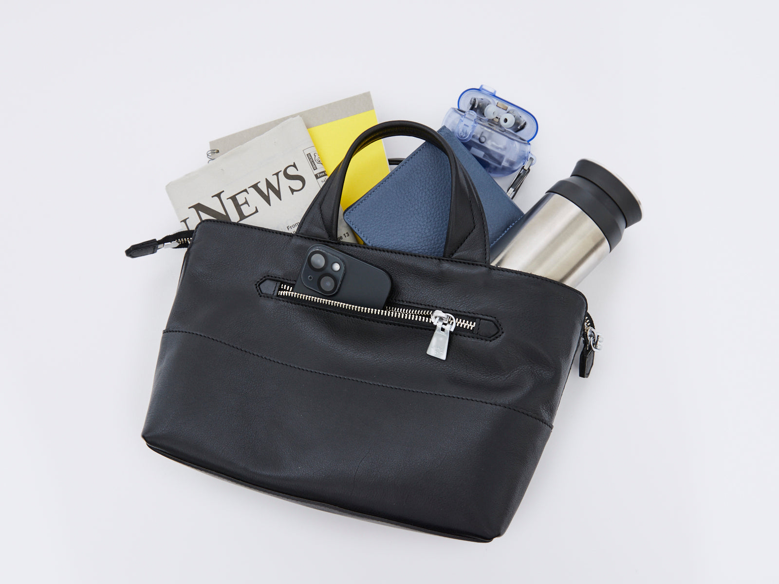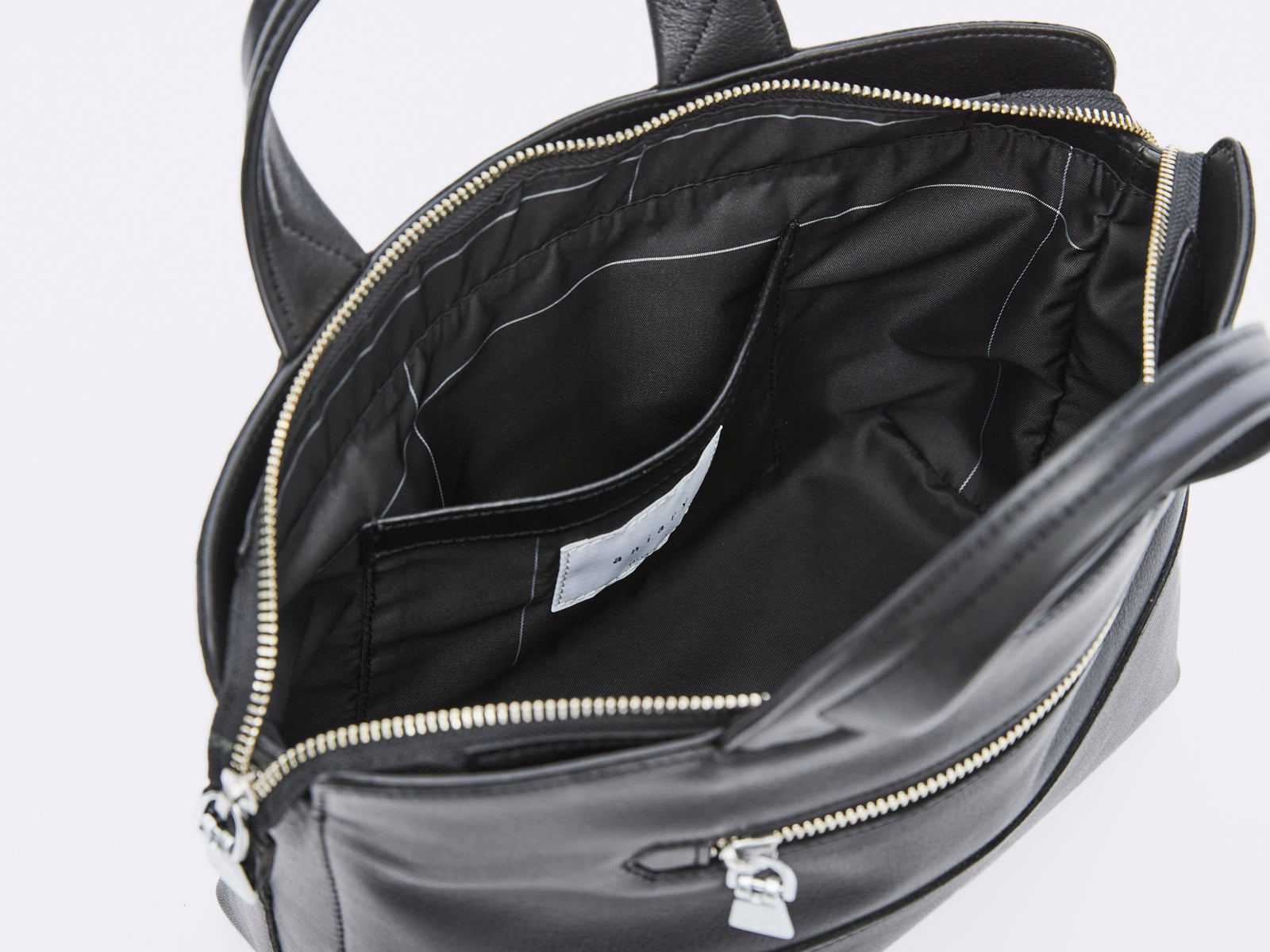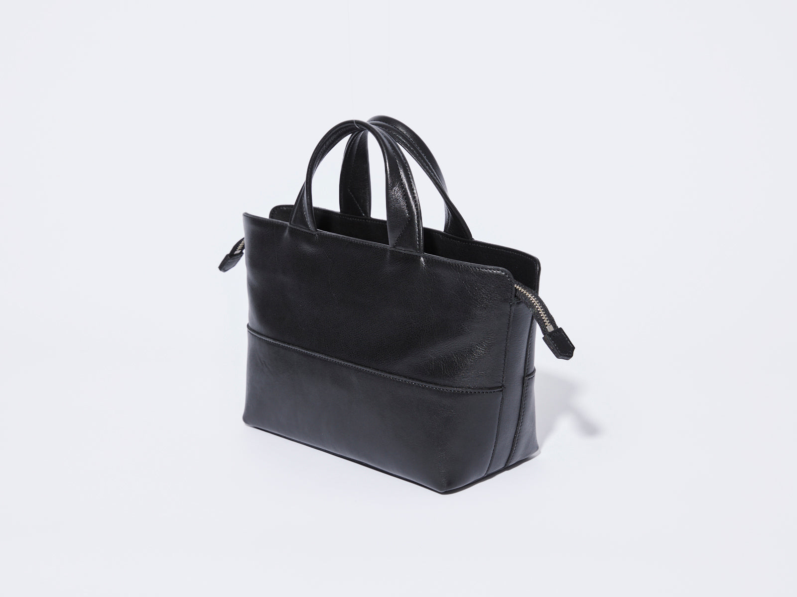 “レザー”バッグブランドとしての「アニアリ」のレザー作りノウハウを注ぎ込み、手間隙を十二分にかけて、理想を追求した革が完成。その手間隙はまず、なめしの工程にあります。ヴィンテージの風格が出るヴェジタブルタンニンなめしと柔らかくしなやかさが増すクロームなめしの両方を絶妙な配合で行うことで、ソフトかつ弾力性のある革下地にしています。その後、職人の手で1枚1枚革を磨きながらフェルト加工を施し、革に眠っているオイル成分を表面に引き出し、高級感のある艶と手に吸い付くようなタッチの質感に仕上げています。また染色にもこだわり、革本来のナチュラルの風合いを消さない染料仕上げを採用。色の調子を見ながら、3度に渡る染色を行うことで、艶に加えて風合いに深みを持たせています。このように時間をかけて作ったゆえ、「アルティザンレザー」には、高級な艶感、風合い、風格、ソフトさ、弾力性と5拍子揃っています。