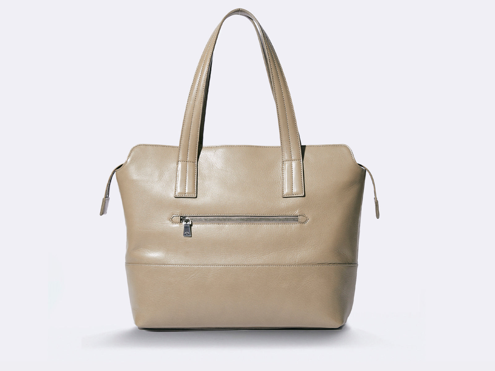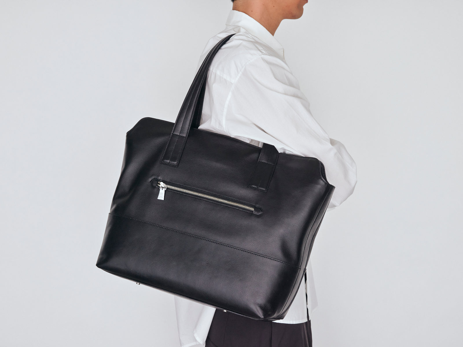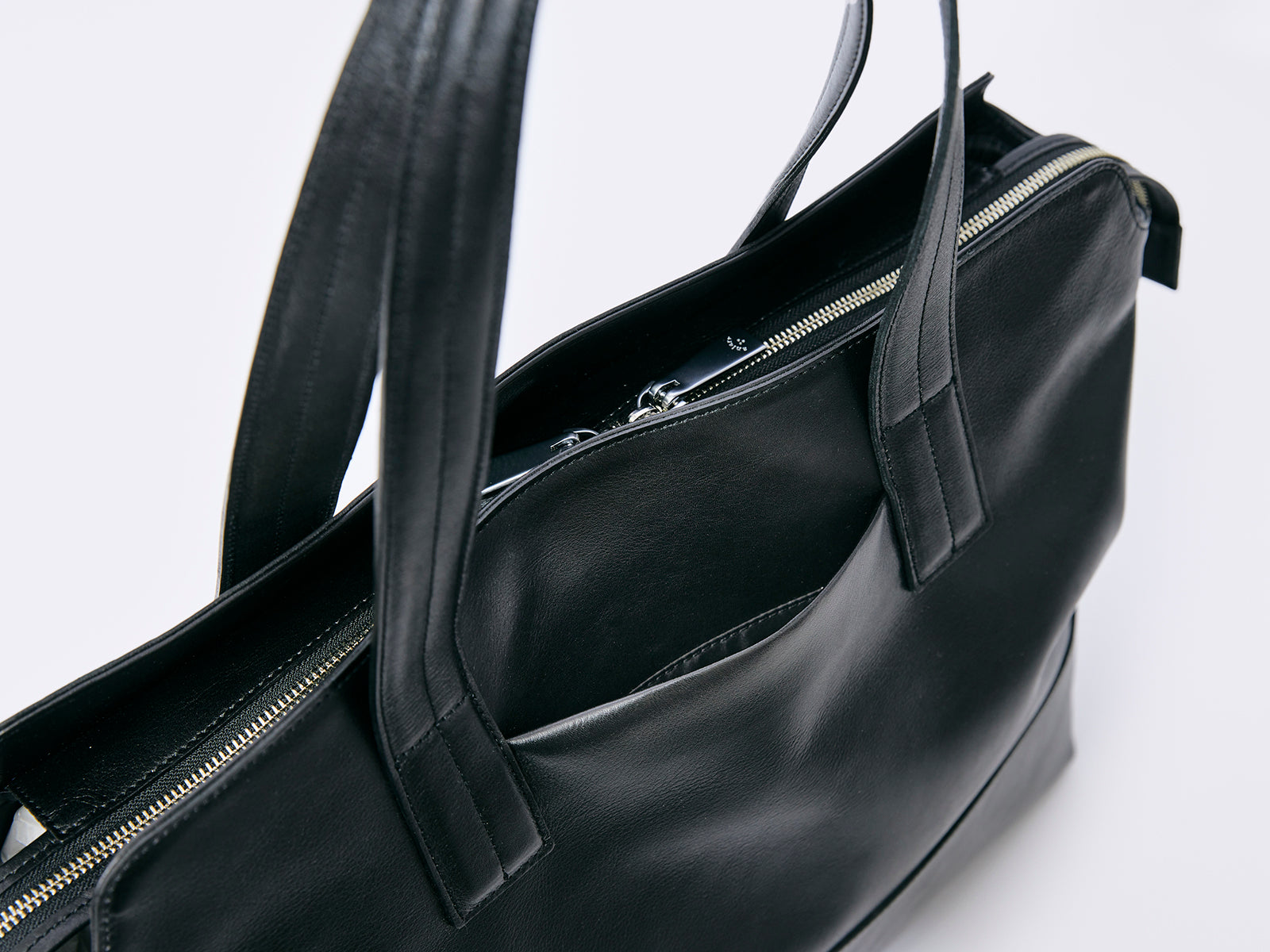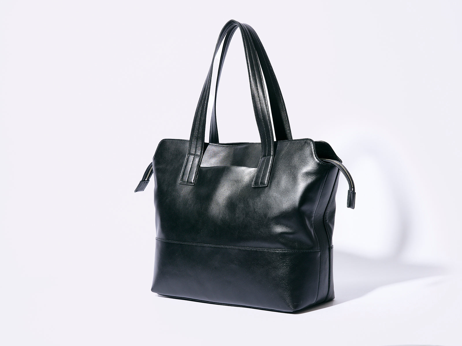“レザー”バッグブランドとしての「アニアリ」のレザー作りノウハウを注ぎ込み、手間隙を十二分にかけて、理想を追求した革が完成。その手間隙はまず、なめしの工程にあります。ヴィンテージの風格が出るヴェジタブルタンニンなめしと柔らかくしなやかさが増すクロームなめしの両方を絶妙な配合で行うことで、ソフトかつ弾力性のある革下地にしています。その後、職人の手で1枚1枚革を磨きながらフェルト加工を施し、革に眠っているオイル成分を表面に引き出し、高級感のある艶と手に吸い付くようなタッチの質感に仕上げています。また染色にもこだわり、革本来のナチュラルの風合いを消さない染料仕上げを採用。色の調子を見ながら、3度に渡る染色を行うことで、艶に加えて風合いに深みを持たせています。このように時間をかけて作ったゆえ、「アルティザンレザー」には、高級な艶感、風合い、風格、ソフトさ、弾力性と5拍子揃っています。