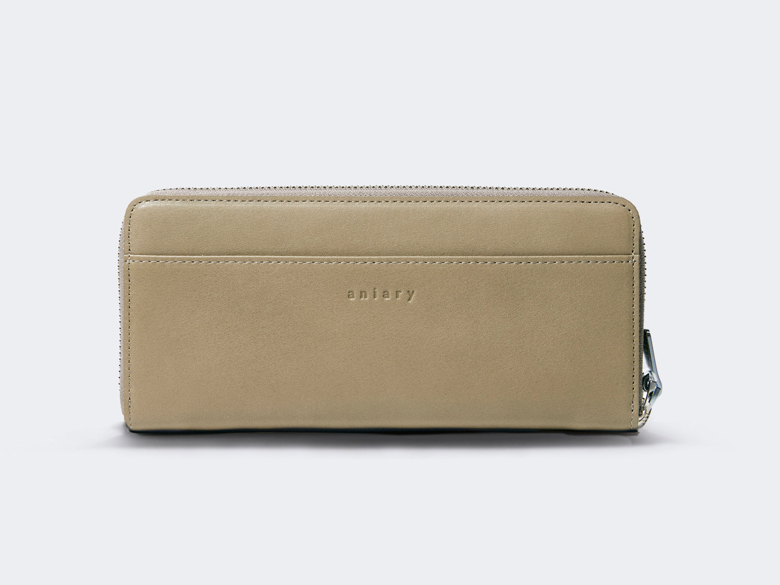 “レザー”バッグブランドとしての「アニアリ」のレザー作りノウハウを注ぎ込み、手間隙を十二分にかけて、理想を追求した革が完成。その手間隙はまず、なめしの工程にあります。ヴィンテージの風格が出るヴェジタブルタンニンなめしと柔らかくしなやかさが増すクロームなめしの両方を絶妙な配合で行うことで、ソフトかつ弾力性のある革下地にしています。その後、職人の手で1枚1枚革を磨きながらフェルト加工を施し、革に眠っているオイル成分を表面に引き出し、高級感のある艶と手に吸い付くようなタッチの質感に仕上げています。また染色にもこだわり、革本来のナチュラルの風合いを消さない染料仕上げを採用。色の調子を見ながら、3度に渡る染色を行うことで、艶に加えて風合いに深みを持たせています。このように時間をかけて作ったゆえ、「アルティザンレザー」には、高級な艶感、風合い、風格、ソフトさ、弾力性と5拍子揃っています。
